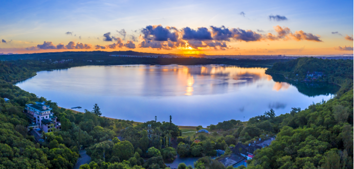 湖光岩玛珥湖畔近1公里的路程的负离子含量远超过每立方厘米3000个,犹如进入郁郁葱葱的绿色氧吧,负离子含量是城市中心的20倍以上,堪称“天然空气净化器”与“森林浴场”。不妨搭乘新近开通时速350公里的广湛高铁,用90分钟来一场时空变换,亲临神秘莫测的湖光岩玛珥湖,湖畔漫步,让身心与自然交融,在湖光山色旁洗涤心灵!